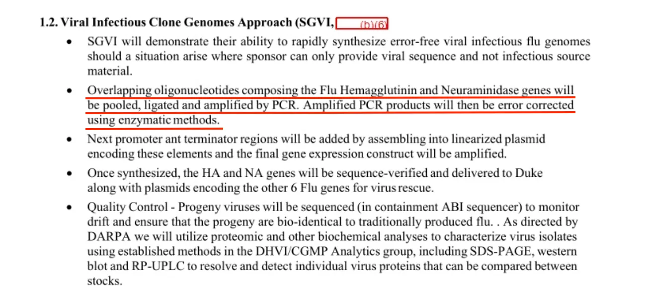 Die DARPA beauftragte Synthetic Genomics (SGI) – heute Teil von Codex DNA – mit der Assemblierung von Influenza- und anderen Viren durch das Aneinanderfügen von DNA-Fragmenten: