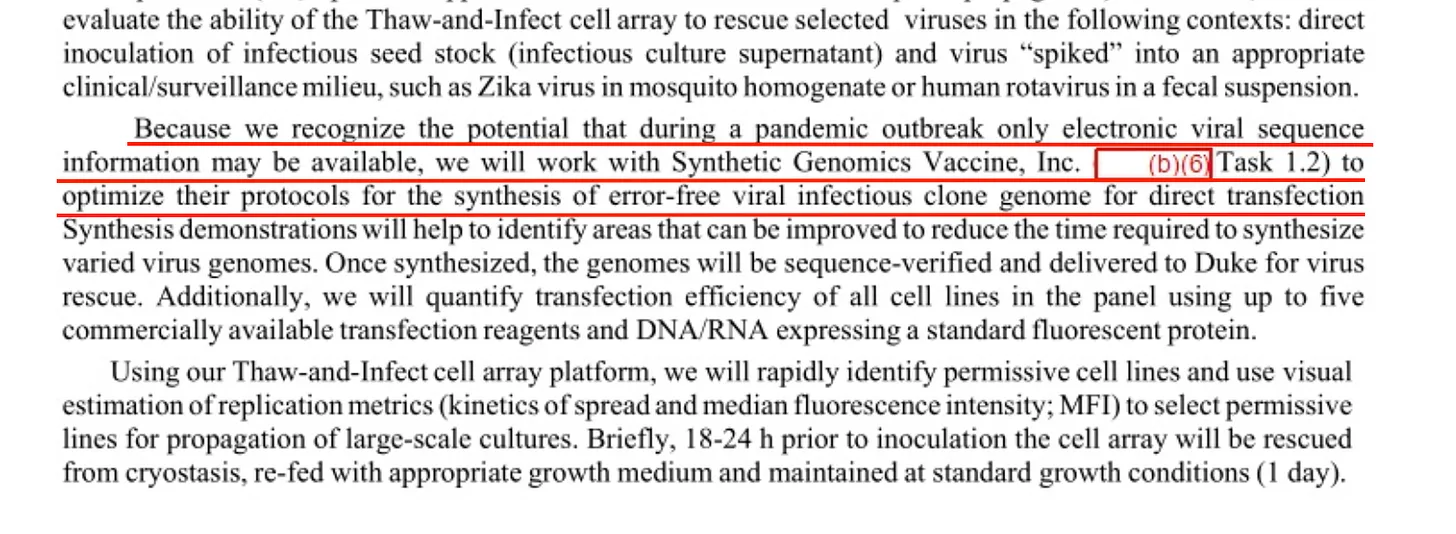 „Da wir uns bewusst sind, dass während einer Pandemie möglicherweise nur elektronische Virussequenzinformationen verfügbar sind, werden wir mit Synthetic Genomics Vaccine, Inc. zusammenarbeiten, um deren Protokolle für die Synthese fehlerfreier viraler infektiöser Klongene für die direkte Transfektion zu optimieren.“