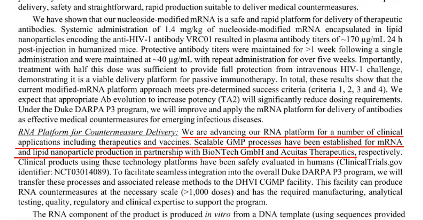 Die Bestätigung der DARPA, dass BioNTech und Acuitas bereits vor der Pandemie in die mRNA-Produktionspipelines integriert waren, zeigt, dass eine Infrastruktur existierte, in der jede hochgeladene Gensequenz schnell zu einem LNP-mRNA-Produkt werden konnte.