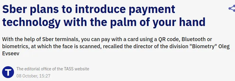 Um nicht zurückzustehen, kündigte Russlands größte Bank, Sber, ihren eigenen Fahrplan für die Einführung von Handflächenzahlungen an: