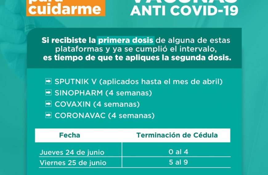 Asunción, Agencia IP.- El Ministerio de Salud prosigue este domingo con la aplicación de la segunda dosis anticovid-19. Las personas deberán acudir al mismo centro vacunatorio donde se vacunaron por primera vez a fin de completar su esquema de inoculación.…