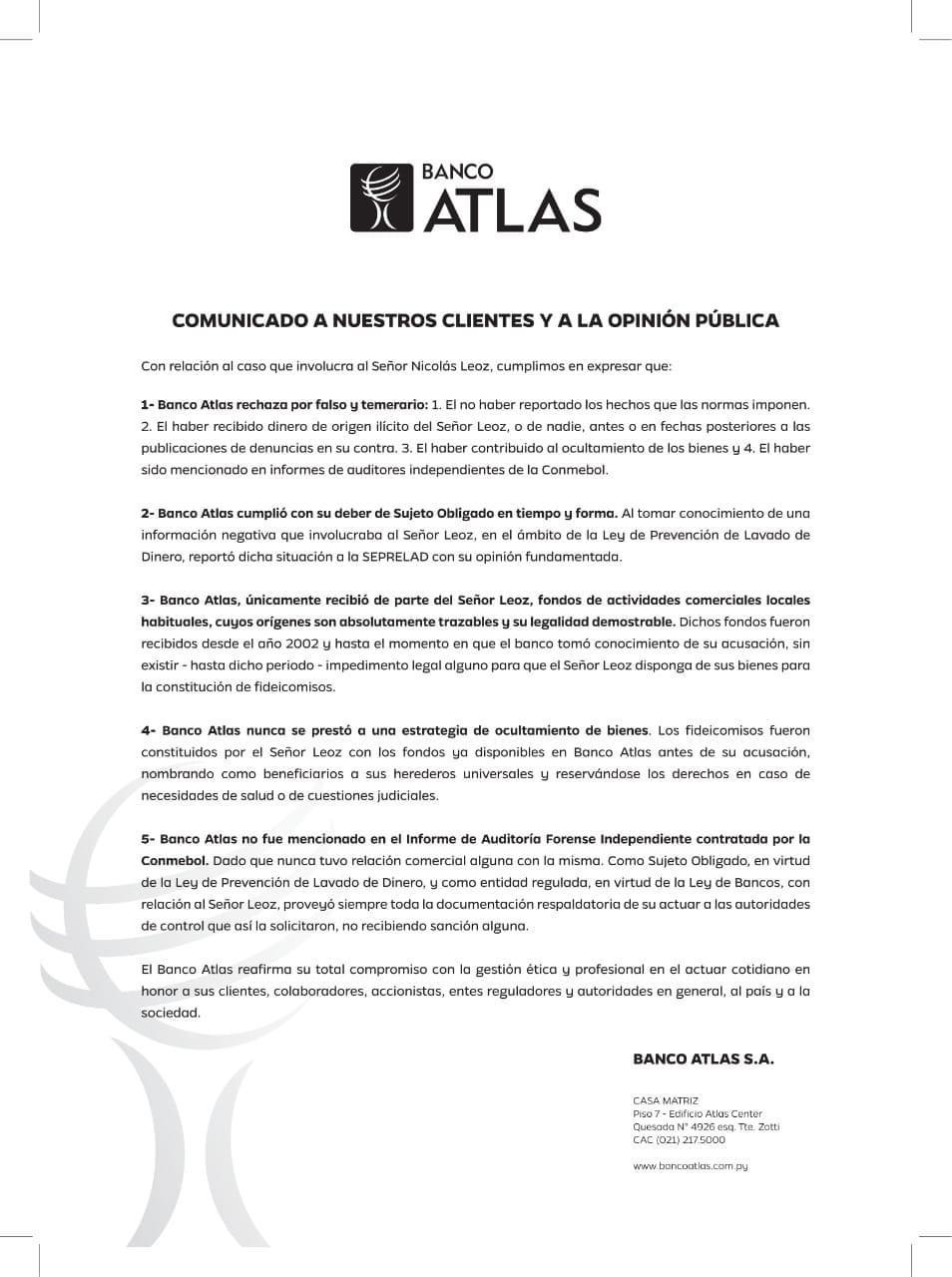 Banco Atlas otorgó millonaria línea de crédito a firma vinculada al narco “Cabeza Branca”