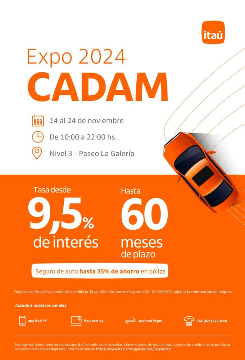 Banco Itaú se presenta nuevamente este año en la tradicional feria de vehículos “Cadam Motor Show 2024” como entidad bancaria auspiciante y con beneficios especiales para el financiamiento de un nuevo Okm.