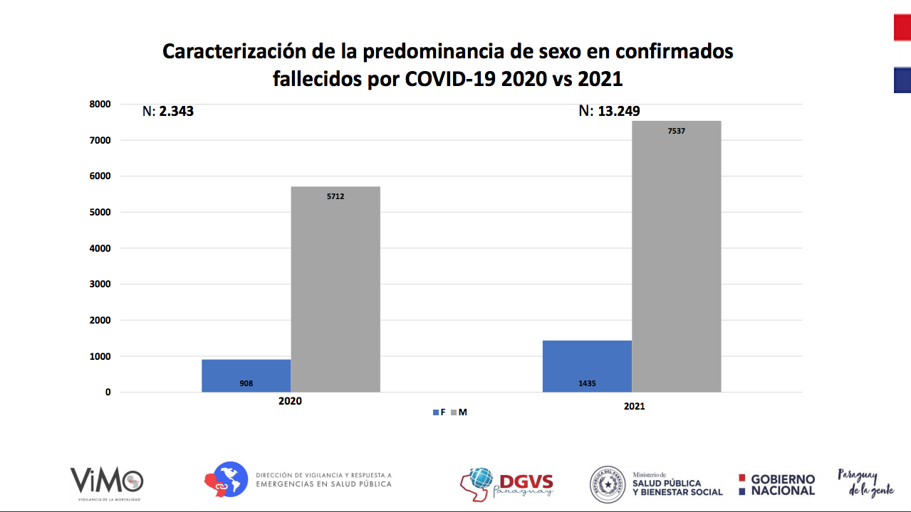 Al transcurrir del 2020, 908 mujeres perdieron la vida a causa de la pandemia en todo el país, mientras que la franja masculina perdió a 5.712 personas.