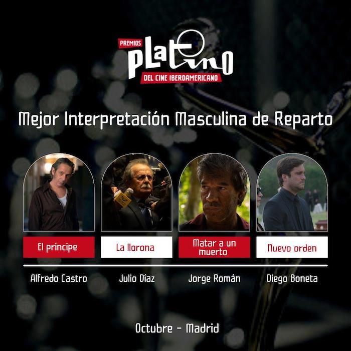 En lo que respecta a Mejor Interpretación Masculina de Reparto, Jorge Román compite con Alfredo Castro por ‘El príncipe’ (Chile), Diego Boneta por ‘Nuevo orden’ (México-Francia), y Julio Díaz por ‘La llorona’ (Guatemala).