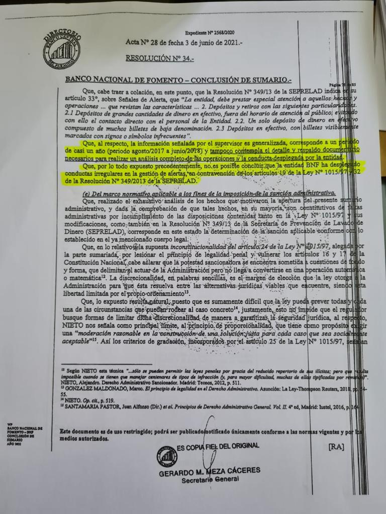 El BNF, a través de un comunicado, señaló que posee “plena convicción” de que los mecanismos de prevención de lavado de dinero que aplica se ajustan a los estándares establecidos en las recomendaciones internacionales y a las disposiciones legales y reglamentarias.