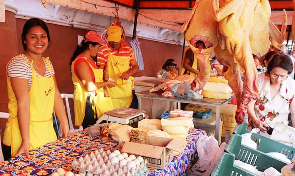 Los feriantes refieren que ya se encuentran preparando sus productos agropecuarios con variedad de carnes de granja para la cena de Noche Buena y Año Nuevo, como cabra, oveja, pavo, cecina y charques. Igualmente, queso Paraguay, harina de maíz y huevos caseros; frutas de estación y variedad de verduras y hortalizas, entre otros.